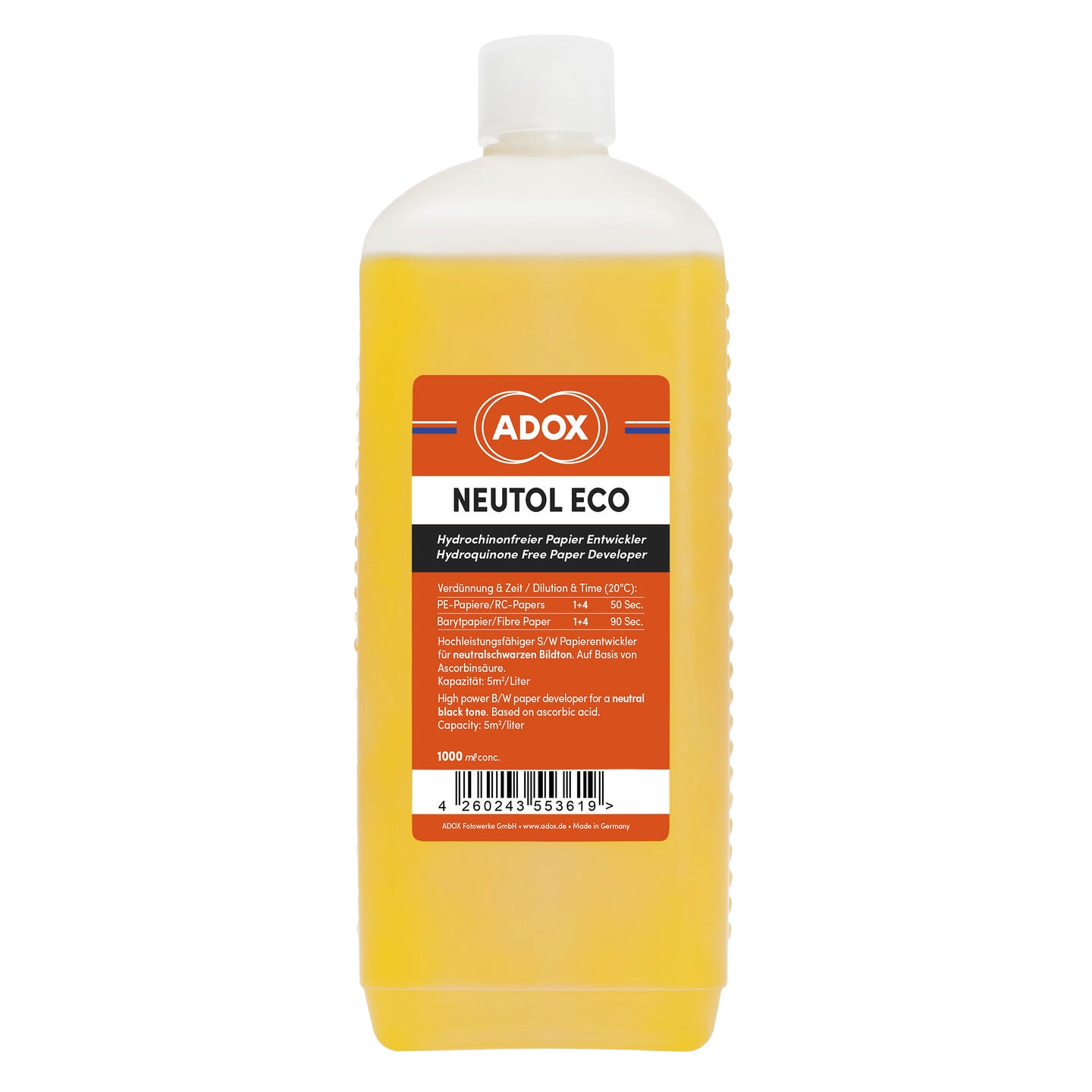 Neutol ECO is a hydroquinone free high power paper developer based on ascorbic acid.