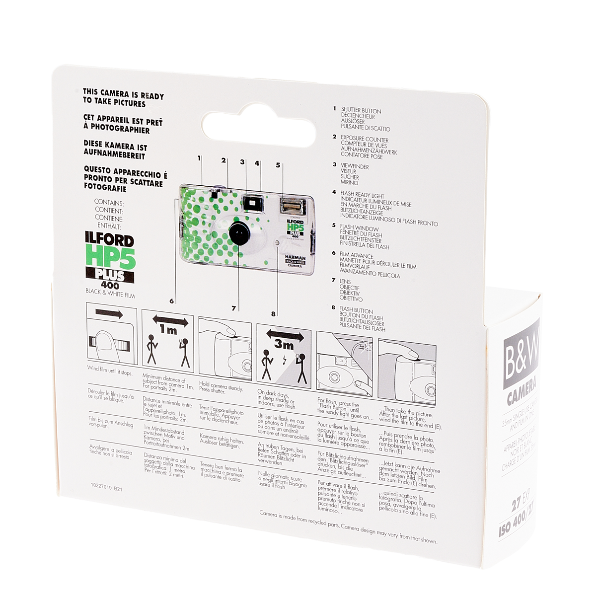 The HARMAN single use camera comes loaded with Ilford´s best-selling HP5 PLUS black & white film and is an easy to use, fun camera. Including 27 exposures of ILFORD HP5 PLUS, this versatile and forgiving (exposure-friendly) ISO 400 film is ideal for these cameras, suitable for most indoor and outdoor shooting situations.