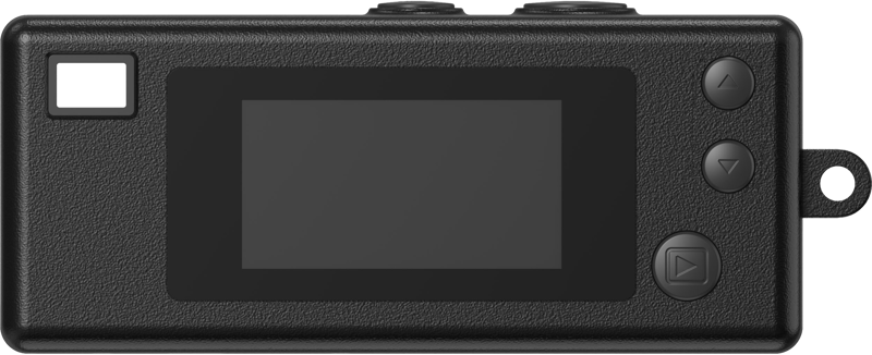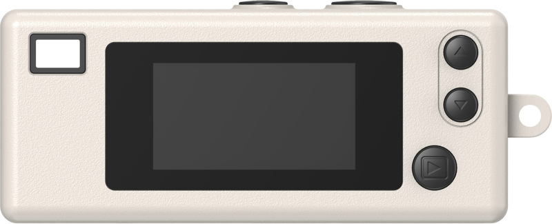 Med bare 58 × 24,5 × 20mm og 30g får Charmera enkelt plass på nøkkelknippet eller i lomma. Inni finner du en 1.6 MP 1/4" CMOS-sensor, et 35 mm-ekvivalent objektiv, 1440 × 1080 stillbilder og 30 fps AVI-video, samt USB-C for lading og overføring. Kameraet har bakskjerm og optisk søker for innramming. Bildene lagres på microSD-kort opptil 128 GB (kort følger ikke med).