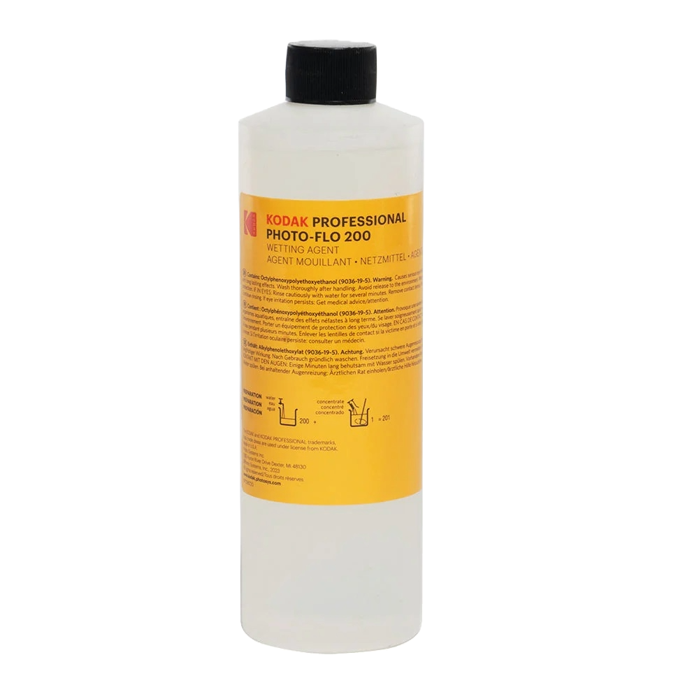 Opplev brukervennligheten med Kodak Photo-Flo 200 Wetting Agent. Den er utviklet for å minimere vannstriper på filmen, og er enkel å bruke. Ved å redusere overflatespenningen til vannet på filmen din, renner vannet lettere av, noe som minimerer vannmerker. Det fremskynder også tørkeprosessen, noe som sikrer et mer ensartet resultat.