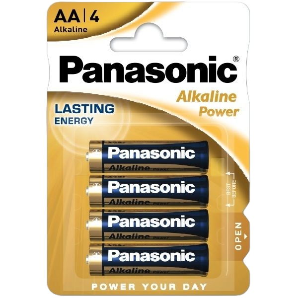 4 pkn med 1,5V LR6 AA batterier fra Panasonic.
