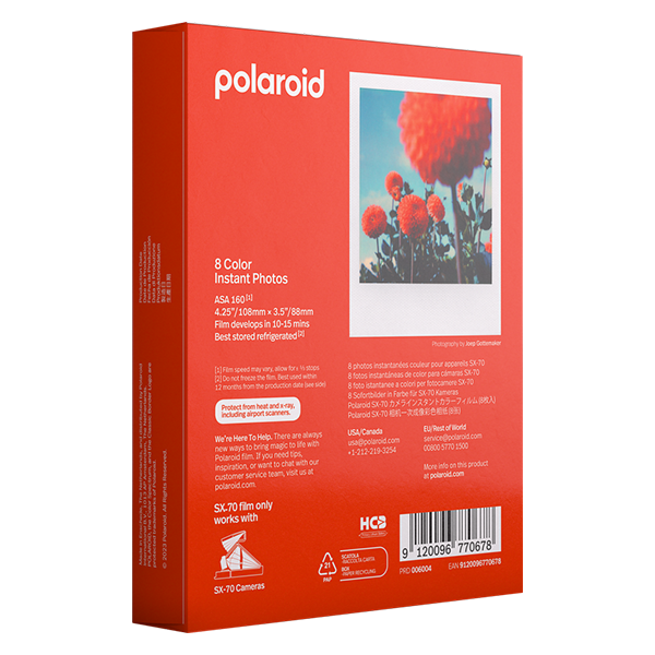 Åtte øyeblikkelige fargefotografier med hvite rammer. For bruk i Polaroid SX-70-type kameraer. Bildene begynner å dukke opp innen 2 minutter. Full utvikling tar 10-15 minutter. SX-70 filmen har en lavere ISO enn våre andre filmer, noe som gjør den perfekt for å fange fine detaljer i godt belyste forhold. Elsket av kunstnere og profesjonelle fotografer, gir denne filmen bilder med rik farge, velbalanserte toner og særegen analog tekstur. Dette er et utmerket valg for alle som ønsker å ta fotograferingen et steg videre.