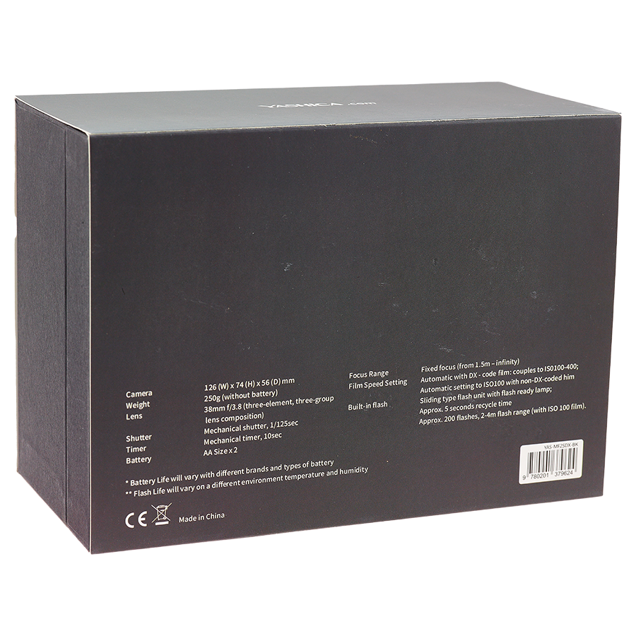 Dette er et enkelt og lett kamera, samt et solid og miljøvennlig alternativ til engangskameraer, og det er utstyrt med et triplet-glassobjektiv.